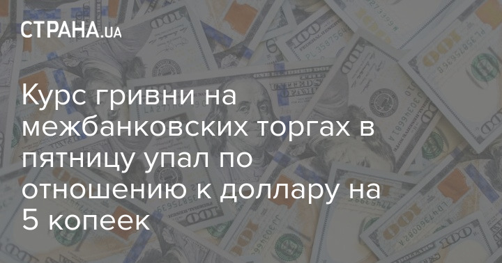 Курс гривни на межбанковском валютном рынке в пятницу ослабился до 26,620 грн за один доллар с 26,575 грн за один доллар в предыдущий рабочий день.
