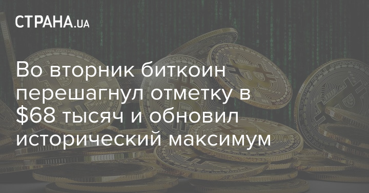Во вторник биткоин перешагнул отметку в $68 тысяч и обновил исторический максимум