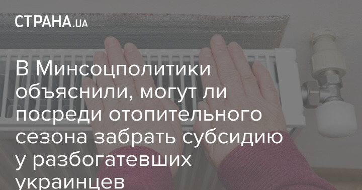 В Минсоцполитики объяснили, могут ли посреди отопительного сезона забрать субсидию у разбогатевших украинцев