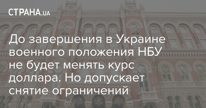 Национальный банк будет держать официальный курс доллара замороженным до завершения военного положения в Украине, но не исключает, что постепенно ограничения на покупку валюты и снятие денег со счетов будут сниматься.