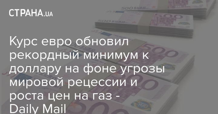 Евро упал до двадцатилетнего минимума к доллару на фоне угрозы рецессии и очередного взлета цен на природный газ.