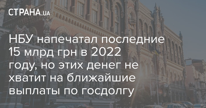 Нацбанк напечатал последние 15 млрд грн в 2022 году, однако этих средств не хватит на ближайшие выплаты по госдолгу.