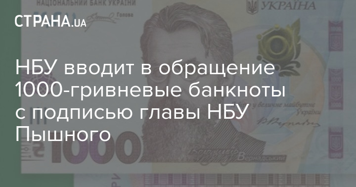 Национальный банк Украины вводит в обращение банкноты номиналом 1 000 гривен с подписью главы НБУ Андрея Пышного.
