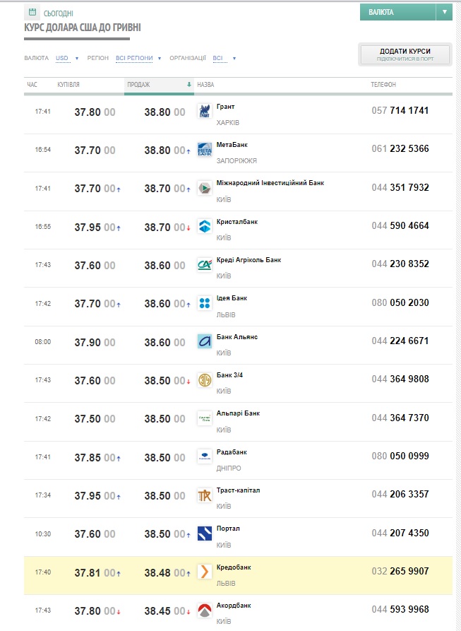 37,50-38,10 грн/$ — "Укрэксимбанк";