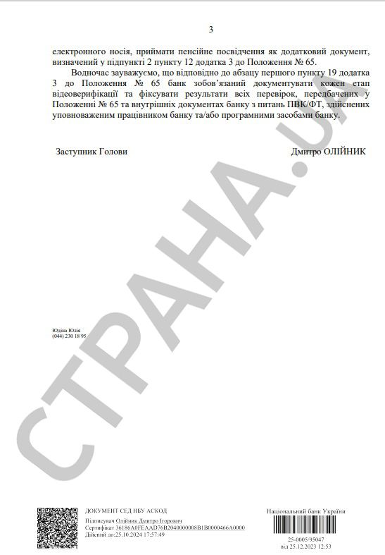 Украинским пенсионерам пытаются упростить открытие и пользование пенсионными счетами в банках. Для этого Нацбанк разослал по финучреждениям внутренне письмо №25-0005/95047, оказавшееся в распоряжении "Страны", под заголовком "Об особенностях осуществления верификации на протяжении военного положения".