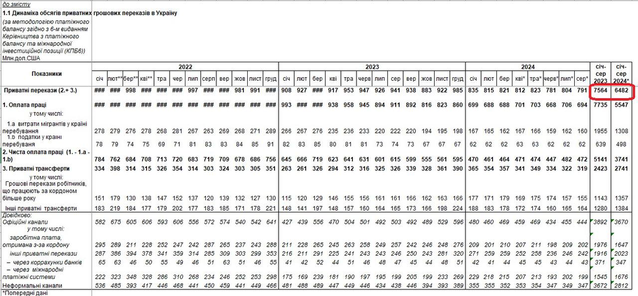 Регулятор сообщил, что в августе текущего года общий объем перечислений граждан Украины сократился еще на 15,9% (до $791 млн), а за январь-август 2024-го — на 14,3% (до $6,5 млрд).