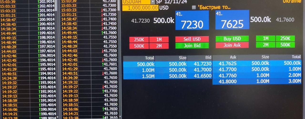 "Мы не наблюдаем резкого роста спроса на американскую валюту, есть стандартный объем, не аномальный. Но Нацбанк, который сейчас обеспечивает межбанк долларом на 60-80% (в зависимости от дня) решил поднимать ценник, и рынок это подхватил. Считываем сигнал на девальвацию. Все помнят, что официальный прогноз, заложенный в госбюджете на конец 2024 года — 42,1 грн/$. К этому уровню и идем, до конца декабря три недели", — отметил "Стране" директор казначейства системного банка.