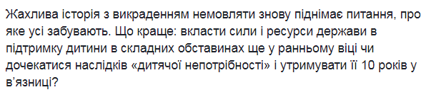 "Последние полтора года Даяна регулярно просила у знакомых крупные суммы денег (от 30 000 до 500 000 гривен) якобы себе на лечение от 4-х стадии рака. Девушка создавала закрытые сообщества в соц.сети для сбора средств себе «на лечение». В июле сообщила друзьям, что родила дочь с гидроцифалиею и ей также нужны деньги на лечение. Но в этой истории она постоянно путалась - рассказывала различную информацию о диагнозе, работу, семейное положение... Во время последнего разговора с подругой (сентябрь 2017) она сообщила, что взяла в долг 15 000 гривен на лечение дочери и постоянно находится с ней в реанимации. Но друзья сомневались в существовании этого ребенка. Их версия - похищение ребенка связано с потребностью в деньгах", - написал на Facebook-странице Уполномоченный Президента Украины по правам ребенка Николай Кулеба.