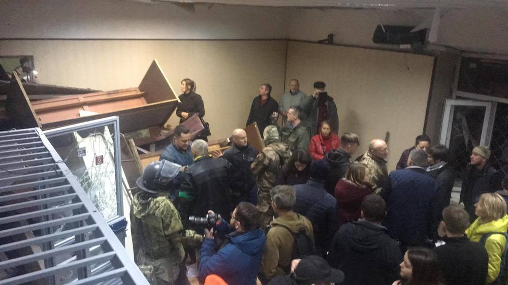 Работники полиции пытались штурмовать здание. В ответ радикалы начали ломать мебель, кусками которой отбивались от полицейских, и бить стекла.
