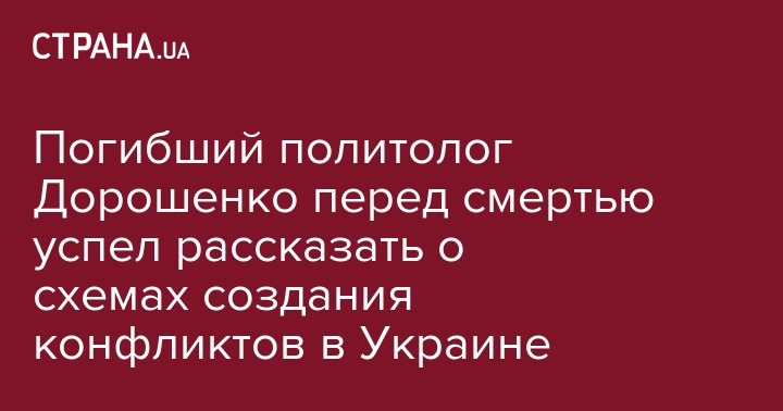 Погибший политолог Дорошенко перед смертью успел рассказать о схемах создания конфликтов в Украине