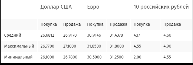 Напомним, что по официальному курс от Нацбанка, доллар подорожал на 5 копеек, его курс на сегодня 26,87 грн. Евро подешевел на 34 копейки и составил 31,18 грн.