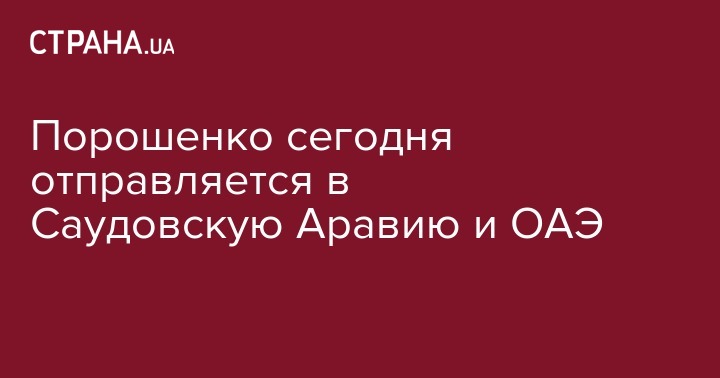 Во вторник, 31 октября, Петр Порошенко, начинает официальный визит в Королевство Саудовская Аравия и Объединенные Арабские Эмираты. Об этом сообщает пресс-служба президента.