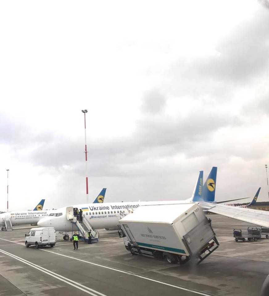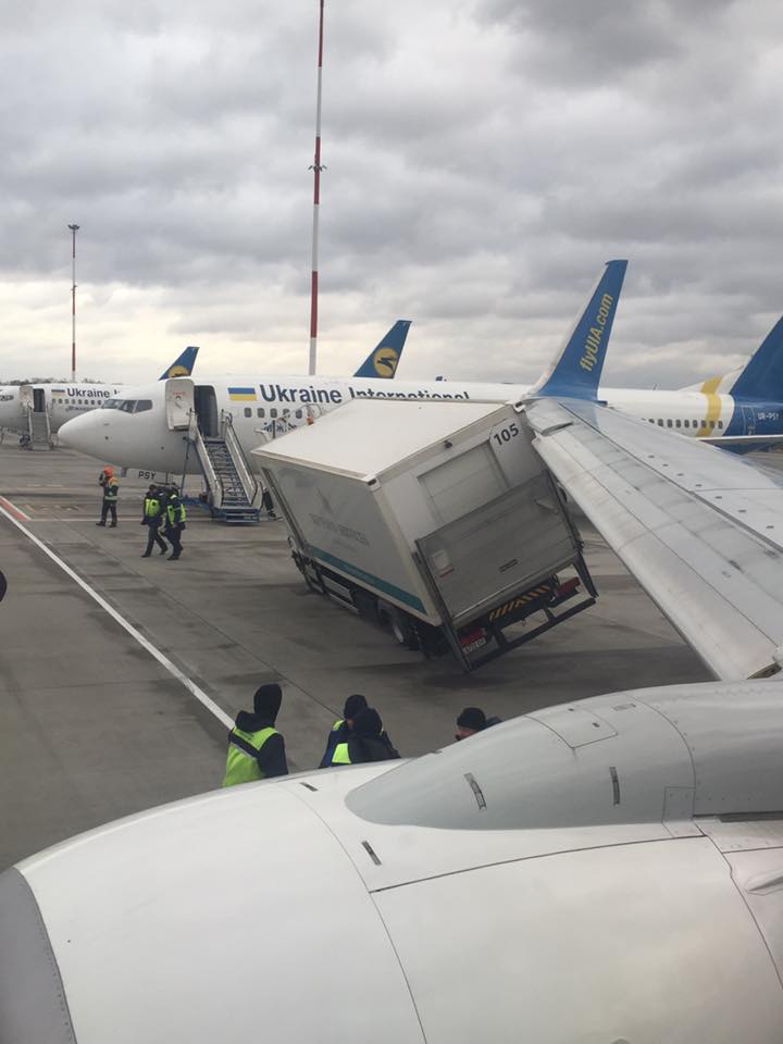 В киевском международном аэропорту "Борисполь" грузовик зацепил крыло самолета. Об этом сообщил в Facebook один из пассажиров, бизнесмен Игорь Гуменный.