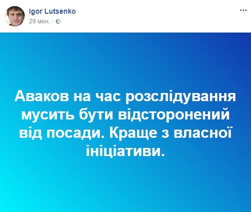 Игорь Луценко, журналист, общественный деятель: "Аваков на время расследования должен быть отстранен от должности. Лучше по собственной инициативе".