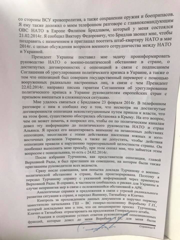Об этом говорится в показаниях Юрия Ильина, бывшего главы Генштаба ВС Украины во времена Виктора Януковича (уволен со своего поста 28 февраля 2014 года), которые опубликовал на своей странице Facebook ранее отстраненный адвокат беглого президента Максим Герасько.