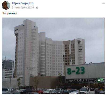Пользователи соцсетей шутят, что Евровидение прошло и дом устал. Напомним, что "Нефтегазу Украины" пришлось заплатить почти 5 миллионов гривен ООО "Вей Медиа" за установку белого полотна на недостроенное здание возле станции метро "Левобережная".