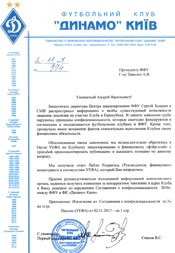 19.15 Накануне матча разразился скандал. В ФФУ заявили, что УЕФА, якобы, может снять Динамо с Лиги Европы из-за финансовых проблем. Но руководство клуба категорически опровергло эту информацию и привело официальный ответ из УЕФА.