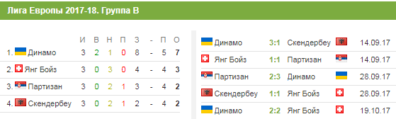 Янг Бойз - Динамо. Команды в группе В перед четвертым туром