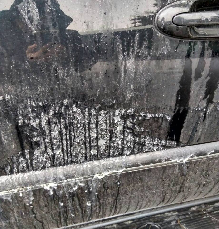 Злоумышленники повредили покрытие капота, крышу и двери автомобиля.