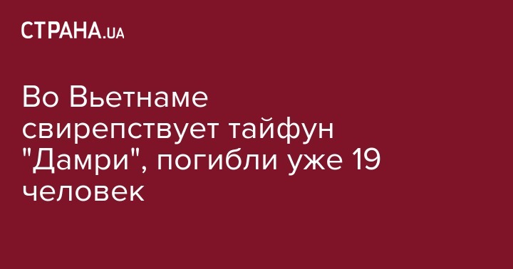 Сегодня, 4 ноября, на центральное побережье Вьетнама обрушился свирепый тайфун "Дамри", от которого погибли по меньшей мере 19 человек, еще 12 человек числятся пропавшими без вести. Об этом сообщает Deutsche Welle.