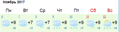 На прошлой неделе погода была следующей: