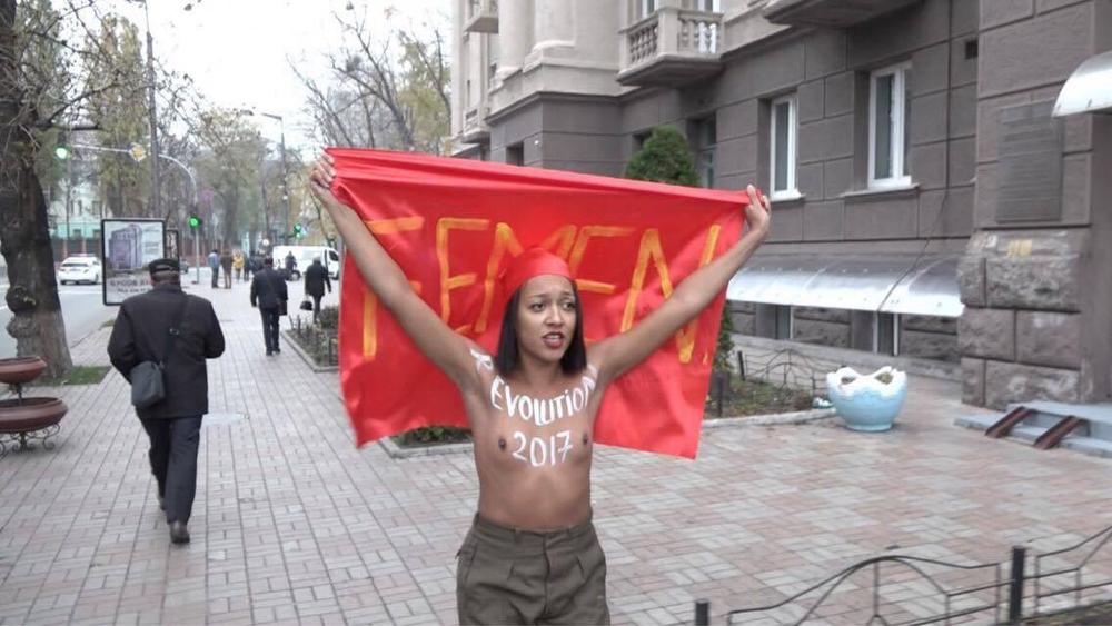 В этот знаменательный день Фемен призвал пролетариев свергнуть ненавистную династию царя Порошенко и цесаревича Гройсмана. "Раздавим шоколадную гидру - скандировала секстремистка. Пролетарии всех стран, соединяйтесь".