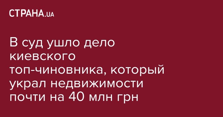 В суд ушло дело киевского топ-чиновника, который украл недвижимости почти на 40 млн грн