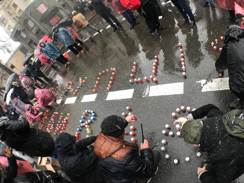 14:03  Подошли к Банковой. Кричат "Коррупция убивает!". Постояли несколько минут и пошли на площадь Конституции.