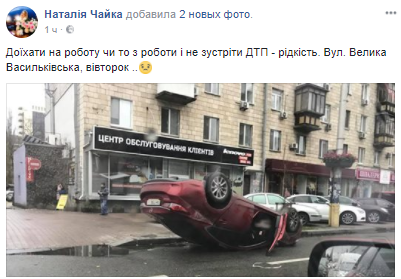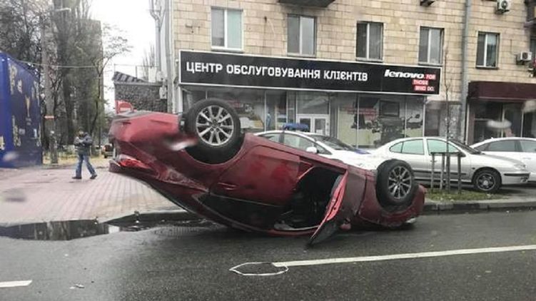Автомобиль перевернулся на крышу в центре Киева Фото: facebook.com/natalya.chayka.96