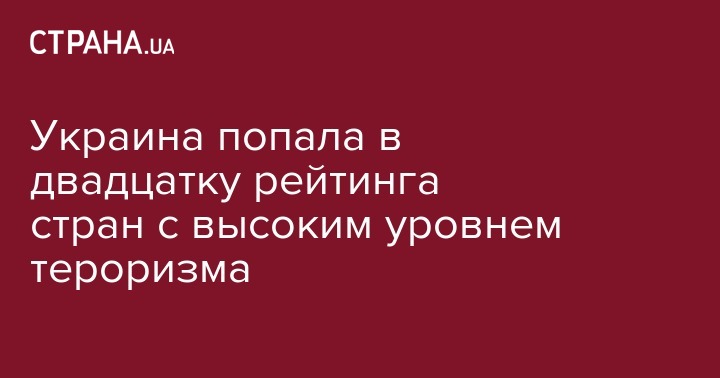 Согласно отчету о состоянии глобального терроризма в 2017 году, обнародованном 15 ноября лондонским Институтом экономики и мира, Украина занимает 17-ю строчку среди стран по уровню угрозы терроризма. По этому показателю Украина получила 6,6 балла по 10-балльной шкале. Причиной для этого послужили боевые действия на востоке страны.