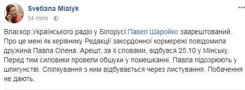 Сегодня стало известно, что в Беларуси задержали корреспондента "Украинского радио" Павла Шаройко по подозрению в шпионаже.