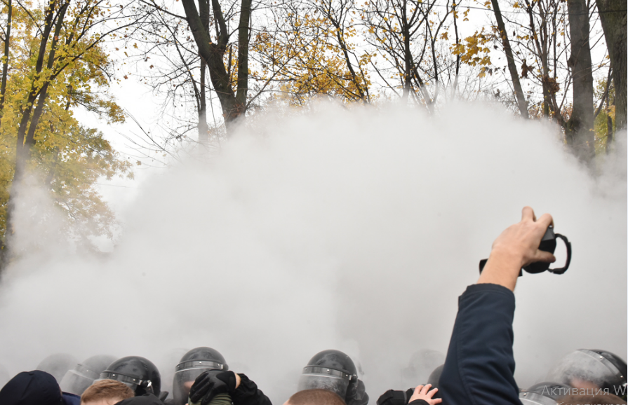 Полиция попыталась оттеснить их. Произошли столкновения. Ворота в Летнем театре были сорваны. Полиция применила слезоточивый газ и свето-шумовые гранаты. Все было окутано дымом.