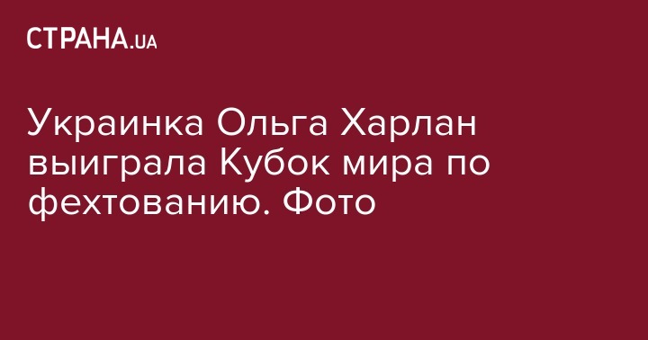 "Браво! Ольга Харлан стала победительницей Кубка мира по фехтованию на саблях в бельгийском Синт-Никлас! В решающем поединке лидер украинской сборной одержала уверенную победу над Росселлой Грегорио из Италии со счетом 15 - 6. Желаем успехов в командном первенстве", - говорится в сообщении Федерации фехтования.