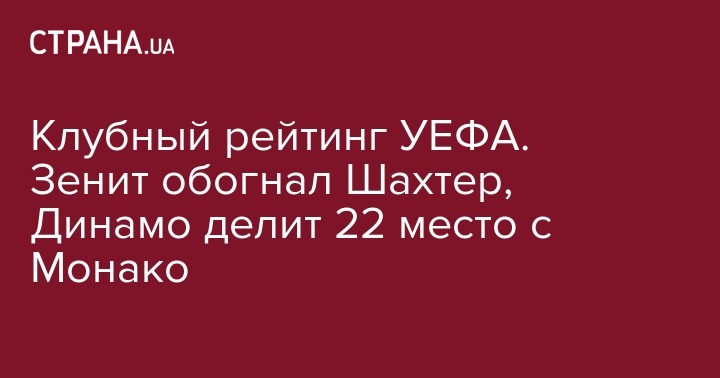 После завершения еврокубковых матчей в Лиге чемпионов и Лиге Европы, в которых "Шахтер", "Динамо" и "Заря" без вариантов проиграли свои поединки, произошли изменения и в общеевропейском клубном рейтинге.