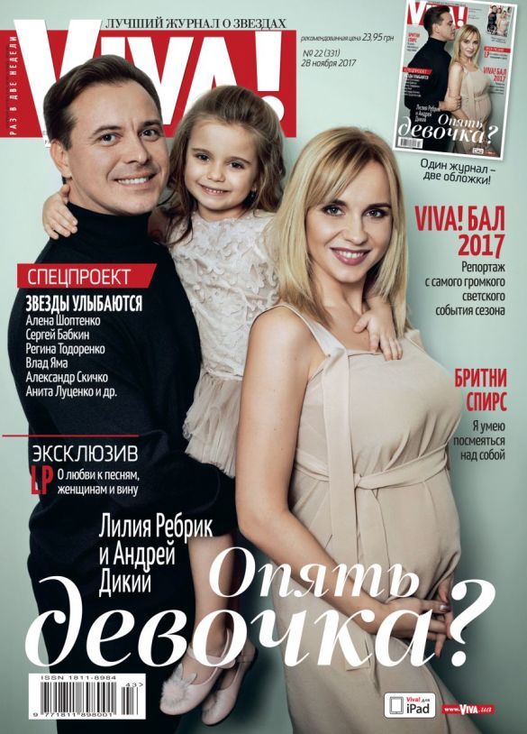 Беременная Ребрик появилась на страницах глянца Viva вместе с мужем и 5-летней дочерью Дианой.