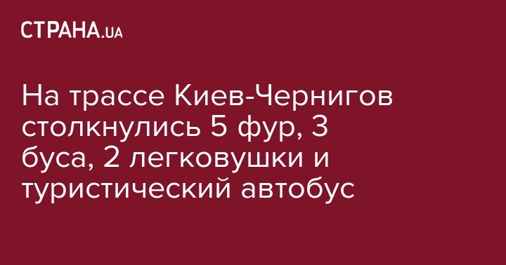 На трассе Киев-Чернигов столкнулись 5 фур, 3 буса, 2 легковушки и туристический автобус