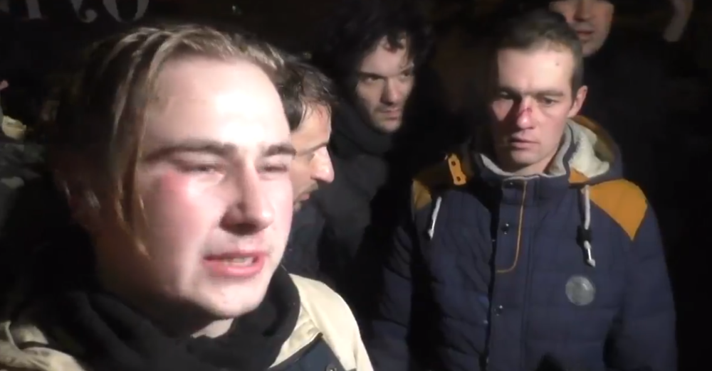 Напомним, что митингующие бросили дымовые шашки под Администрацию президента. У здания МВД начались потасовки и снежки.