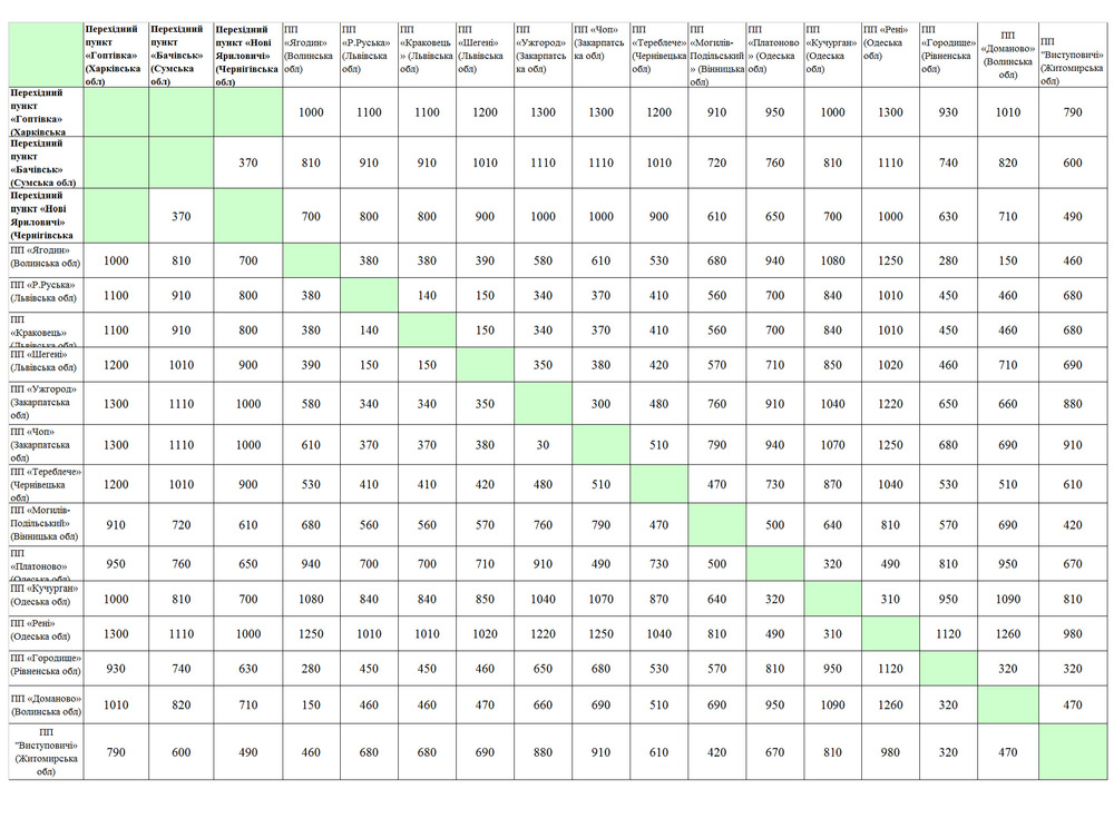 Маршруты предусматривают движение из/в саму Россию через два пункта пропуска в Сумской и Харьковской областях. Предусмотрены также четыре маршрута через Беларусь, четыре – через Польшу, четыре – через Молдову, два – через Румынию, и по одному через Словакию и Венгрию.