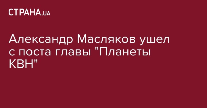 Президент Международного союза КВН (МСК) Александр Масляков ушел с поста директора ГУП "ММЦ Планета КВН". Он сделал это по собственному желанию, передает ТАСС со ссылкой на пресс-службу МСК.