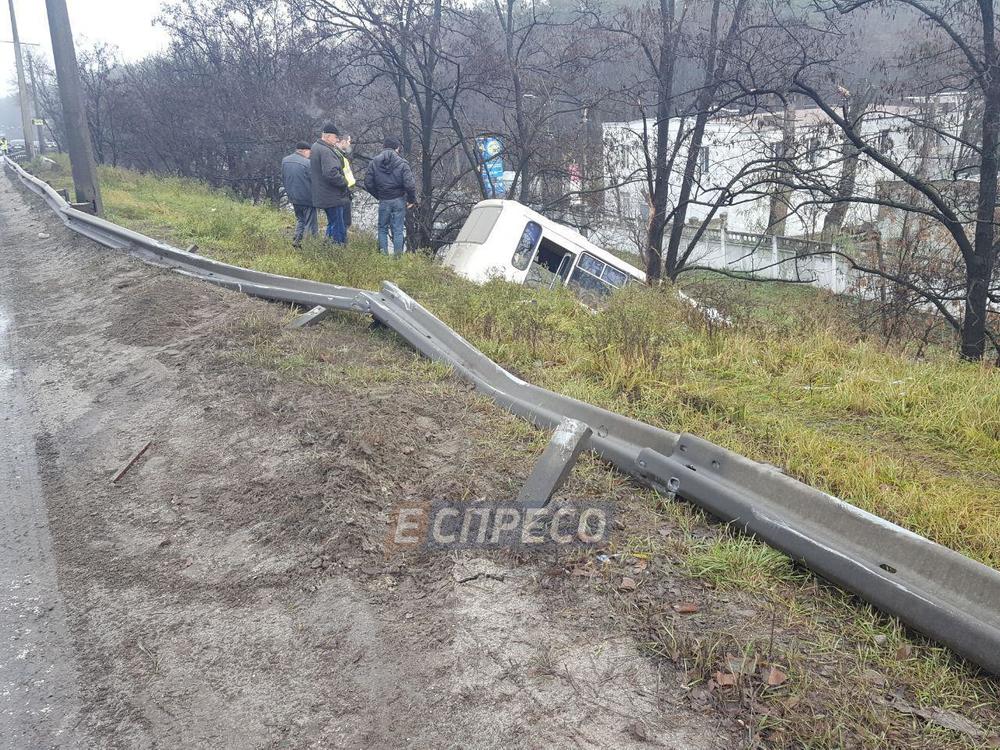 В Киеве пассажирский автобус слетел с трассы, ударившись об отбойник
