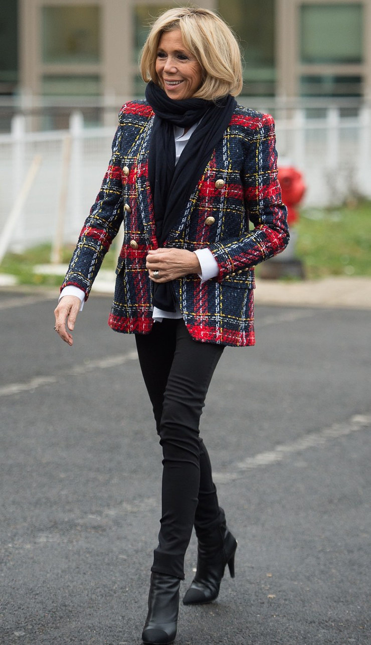 Супруга Макрона блеснула на публике в черных скини и ярком пиджаке за €1370