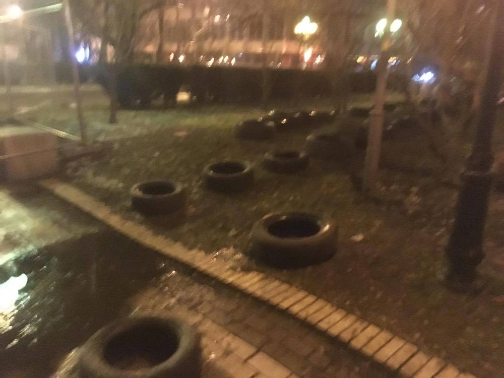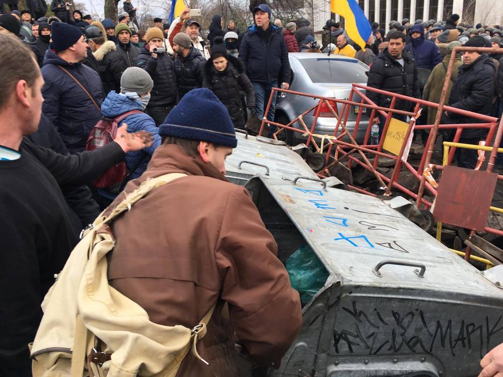 12:04  Активисты наваливают баррикаду. Бросили туда доску и сказали, что "это могильная плита Порошенко".