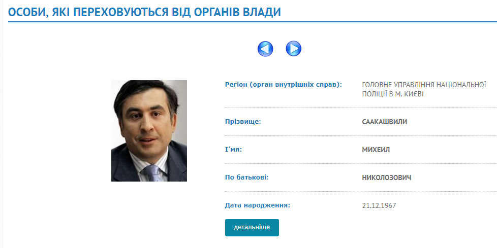 15:00  Сегодня в базе данных МВД Украины появился профиль бывшего президента Грузии в разедле "Лица, которые скрываются от органов власти".