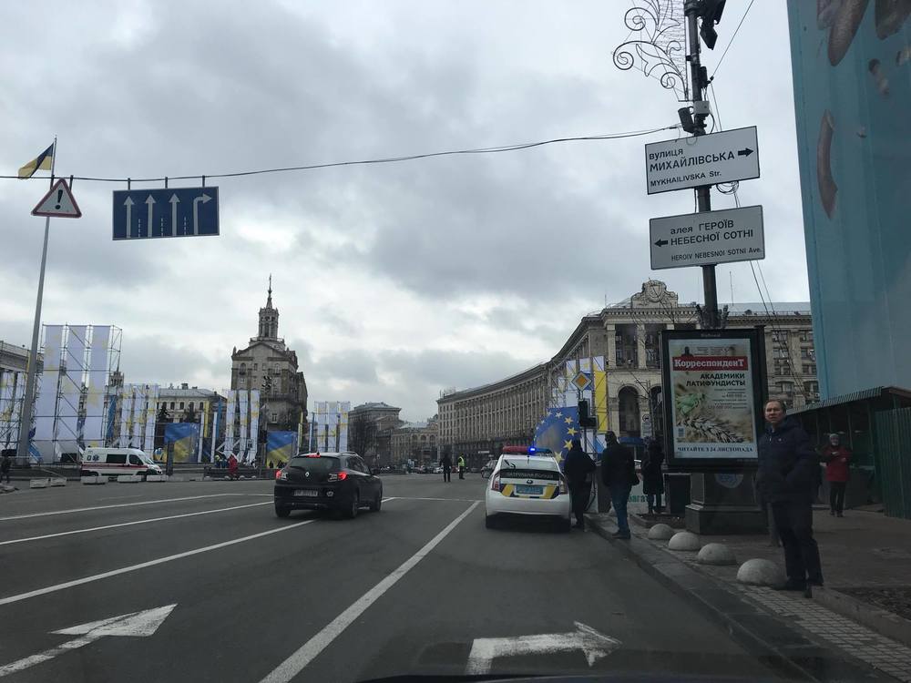 10:44  Бус, внутри которого задержанный Михо, черепашьими темпами движется по центру Киева.