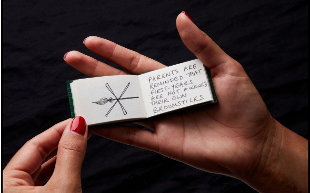 На страницах представлены собственные рисунки писательницы, которые показывают метлы, котлы и палочки.