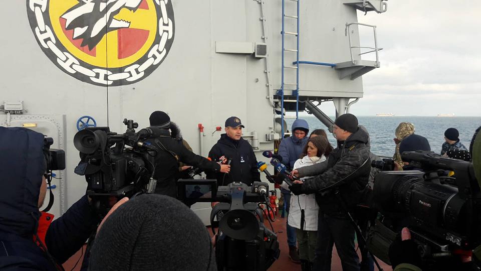 За действиями в море с борта фрегата "Гетман Сагайдачный", а также с борта одного из летательных аппаратов, который в том числе осуществлял посадку на фрегат, наблюдал командующий ВМС ВС Украины вице-адмирал Игорь Воронченко.