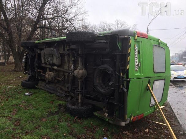 В Киеве на Шулявке автобус "телевидение" попал в ДТП и перевернулся