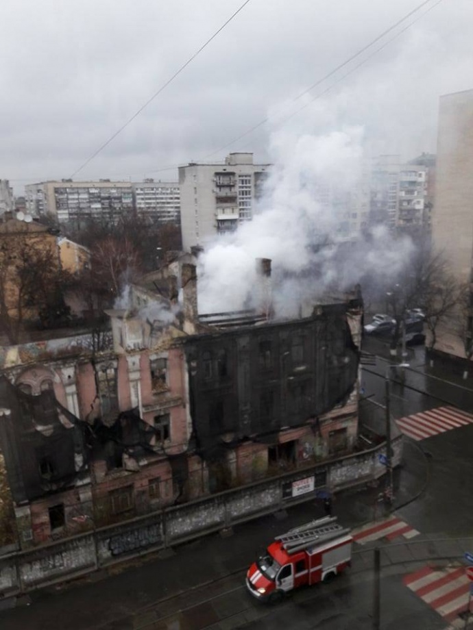 Сегодня, 10 декабря, в Киеве, снова загорелся дом на улице Щекавицкой, 19/33, который является историческим памятником.