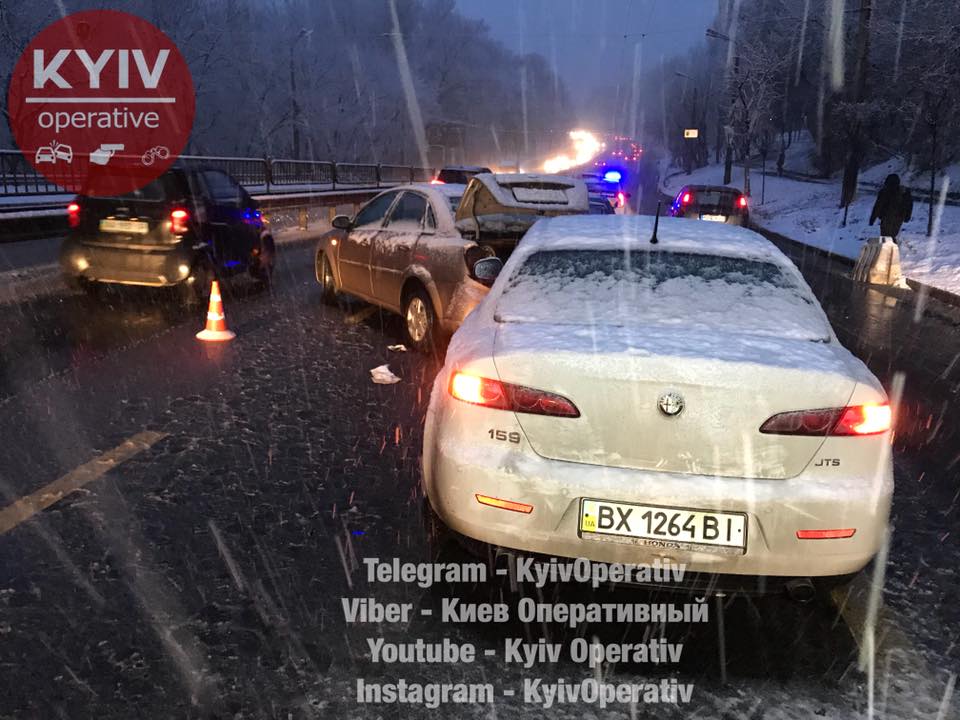 Тройное ДТП произошло 10 декабря в столице в районе метро "Дорогожичи", движение транспорта заблокировано. Об этом сообщает паблик "Киев.Оперативный".