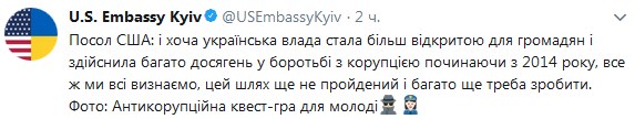 Согласно сообщению, 9 декабря, во Всемирный день борьбы с коррупцией посольство провело для украинской молодежи антикоррупционную квест-игру.
